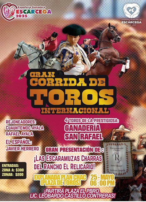 Regresan las corridas de toros en Escárcega, Campeche después de seis años sin feria, con una corrida de toros el domingo 25 de mayo y un festejo cómico taurino el viernes 23 de mayo en la cómoda plaza de toros -El Cadete-.