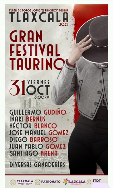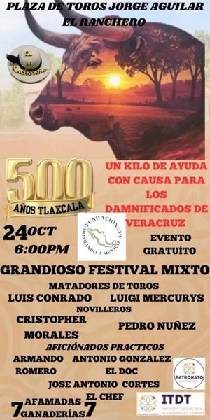 En esta ocasión serán 7 Festivales Taurinos en la Plaza de Toros Jorge Aguilar -El Ranchero- los días 24, 26 y 31 de Octubre, también 7, 14 y 16 de Noviembre, con la curiosidad que el día 16 habrá un Festival a medio día y otro por la tarde, en estos festejos alternarán más de 40 toreros entre los que hay ganaderos, matadores de toros, novilleros y aficionados prácticos de primer nivel, en los festivales de los días 24 y 26 se pide la donación de 1 kilo de ayuda para accesar, en los demás el acceso es libre (Se adjuntan Carteles y horarios), es importante mencionar que estos festejos representan también una gran generación de empleos y una derrama económica que directamente beneficia a familias de Tlaxcala.