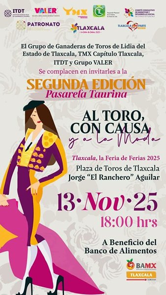Este evento organizado por el grupo Ganaderas de Toros de Lidia del Estado de Tlaxcala con apoyo de Tauromaquia Mexicana Capítulo Tlaxcala y grupo VALER, será el único con costo y lo recaudado será donado al Banco de Alimentos.