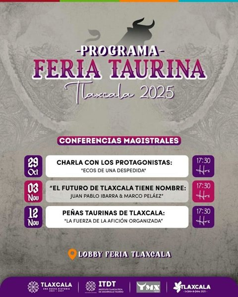 El Instituto Tlaxcalteca de Desarrollo Taurino en coordinación con el Patronato de Feria de Tlaxcala ha presentado ya, el programa oficial de eventos culturales taurinos que vestirán la Feria de Ferias Tlaxcala 2025.
