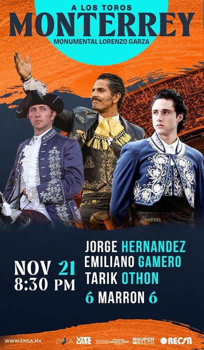 La empresa Espectáculos Monterrey (EMSA), por medio de la coordinación operativa del coso Monumental -Lorenzo Garza- de Monterrey, Nuevo León, informa que, será el rejoneador charro mexiqueño Emiliano Gamero quien sustituya al navarro Guillermo Hermoso de Mendoza este viernes 21 de noviembre de 2025, a partir de las 20:30 horas.