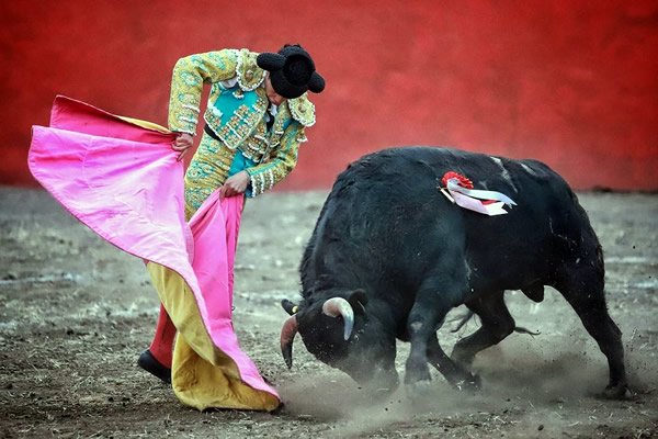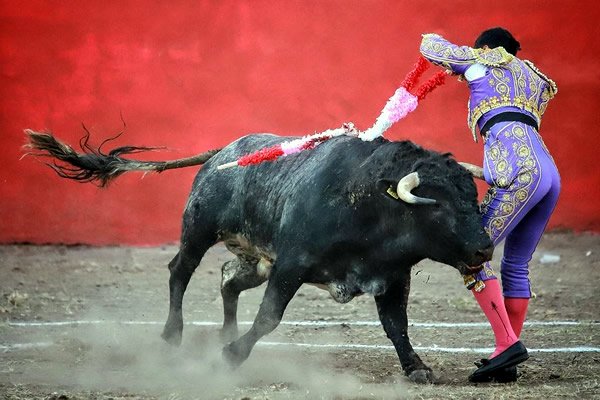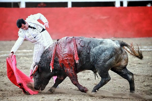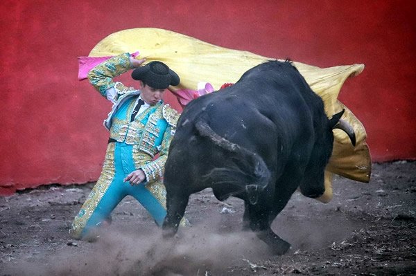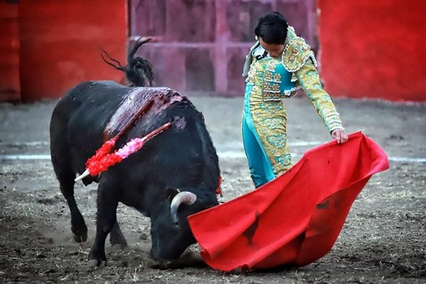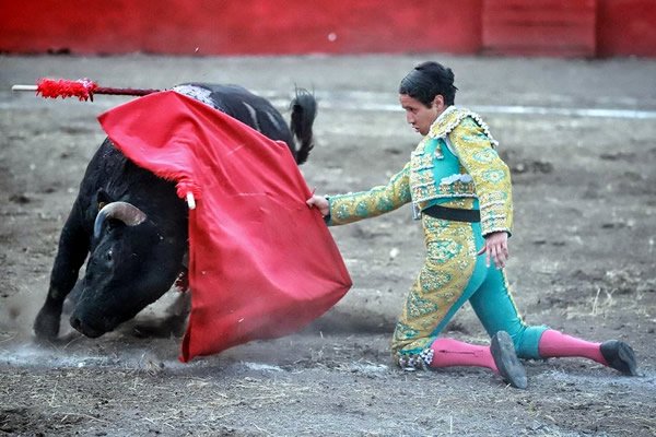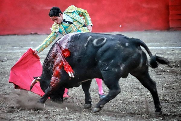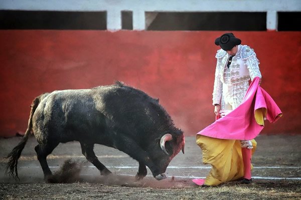 Alan Corona. Palmas. El Toro tardó en caer y privó al torero de trofeos.