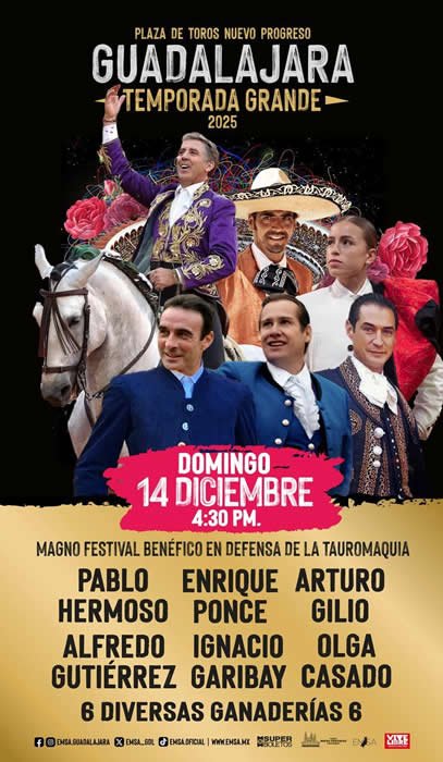 La empresa informa que el matador tapatío Alfredo Gutiérrez, asumirá el compromiso de torear este domingo 14 de diciembre a las 4:30 de la tarde en la Plaza de Toros Nuevo Progreso de Guadalajara, integrándose al cartel, ante la ausencia del matador Eulalio López -Zotoluco- quien sufrió fractura en dos arcos intercostales del hemitórax izquierdo, por lo que, tras someterse a una valoración, por prescripción médica se encuentra impedido para actuar este domingo.