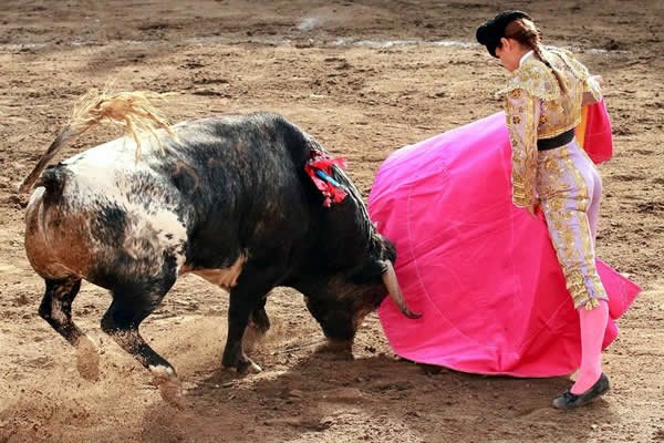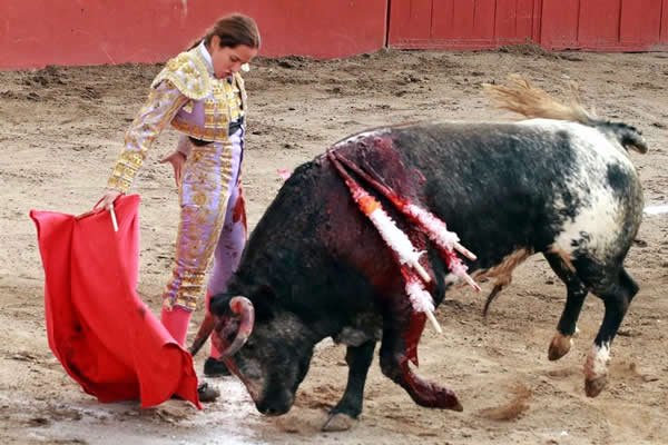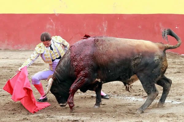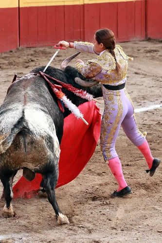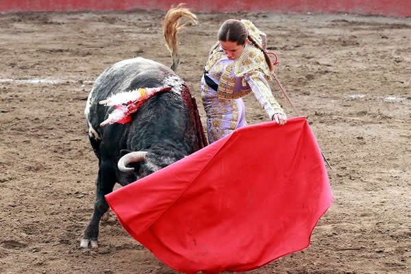 Al final del festejo Paola regresó al ruedo y escuchó sonora ovación junto a Sebastián Palomo que le había brindado su actuación y corto otro apéndice.