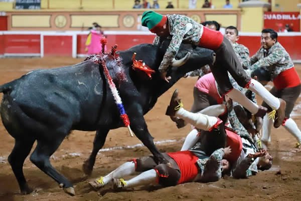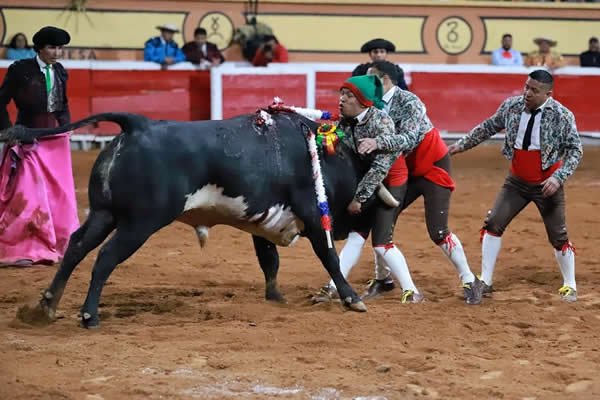 Actuaron los Forcados de Tlaxcala que compartieron la vuelta y la ovación tras 2 buenas pegas al 2o intento.