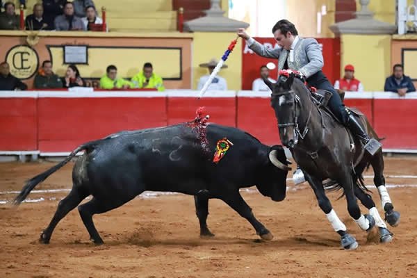 Javier Funtanet (Rejoneador) Vuelta / Ovación en los medios. Perdió trofeos por el acero.