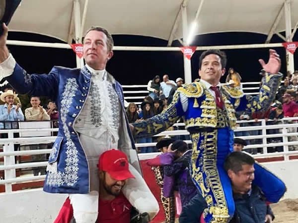La corrida mixta que se llevó a cabo hoy en Villa Juárez finalizó con la salida a hombros del rejoneador Jorge Hernández Gárate y Antonio García -El Chihuahua- dupla que sumó un total de cinco orejas y un rabo a su estadística, a lo largo de una jornada triunfal que provocó la emoción del público en varias ocasiones.