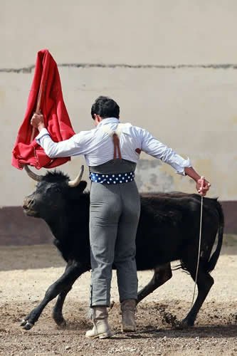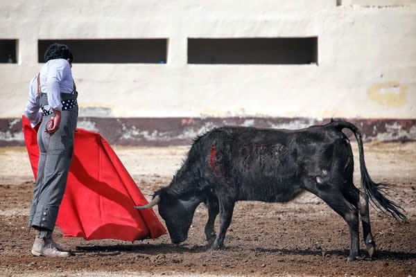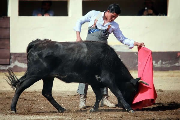 Con la amabilidad y grandeza de siempre el Matador Del Olmo dispuso de dos vacas para que el joven torero pusiera a punto su Tauromaquia y generosamente le dio algunos consejos durante a lidia, que viniendo de un torero de esa importancia, resultan invaluables, Martínez estuvo a gusto, solvente y por momentos artista, pensando en la cara de las bravas vacas; El Matador Mario se encontraba acompañado de su hijo Santiago y del maestro Manuel Zamora -El Gallo-.
