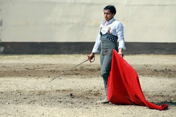 Luis Fernando llegó acompañado de su apoderado Eder Escamilla, su padre José Luis Martínez y el novillero Giovani Hernández quien le ayudó en las labores y también pudo darse -las tres-.