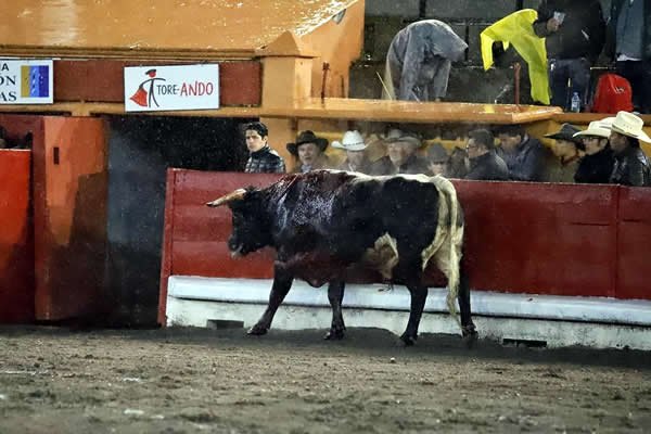 Plaza de Toros Rodolfo Rodríguez -El Pana- más de media plaza en tarde fría con llovizna que duró hasta el quinto toro.