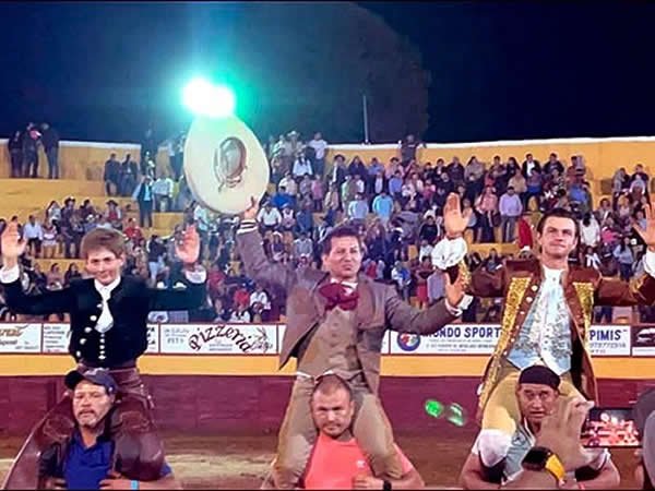 Tras el rotundo éxito del rejoneador yucateco Cuauhtémoc Ayala ayer en la Monumental de Mérida, prolongó su racha triunfal esta tarde en la plaza -Rosa Yolanda- de Peto, Yucatán, donde salió en hombros junto a Fauro Aloi y André, luego de una actuación de alto nivel ecuestre que entusiasmó al público.
