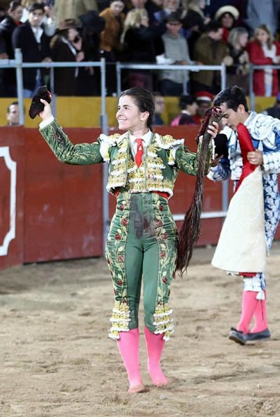 Miriam Cabas (verde y oro): Palmas y dos orejas y rabo tras un indulto.