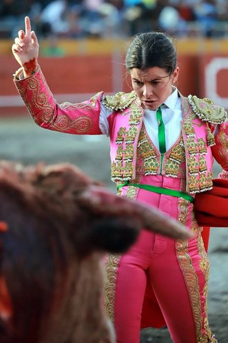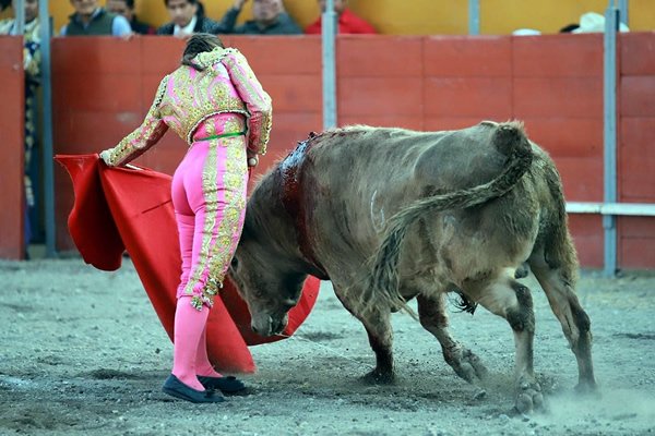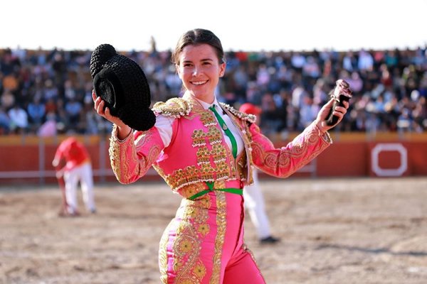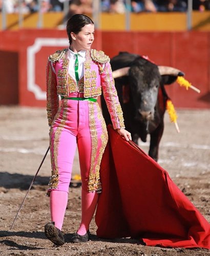 La novillera Miriam Cabas (rosa mexicano y oro): Oreja y ovación.