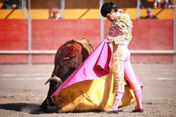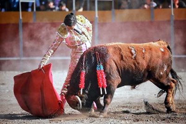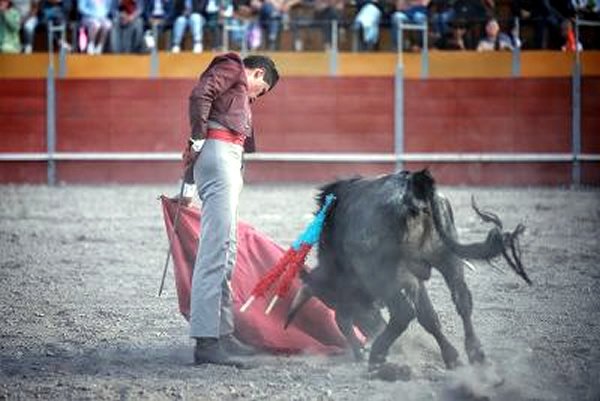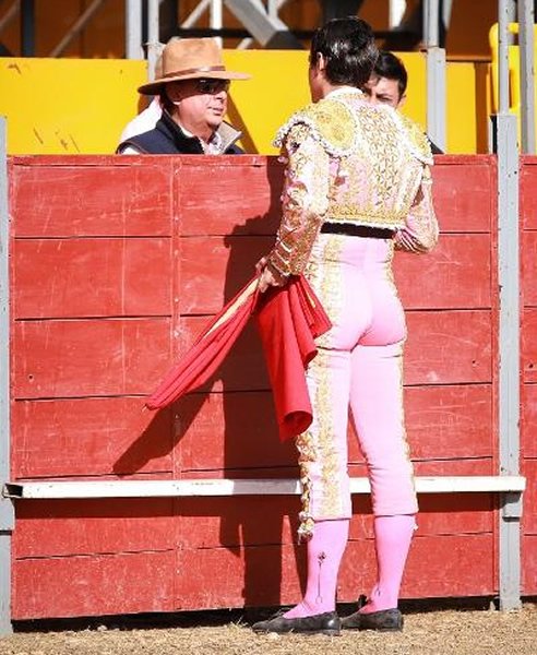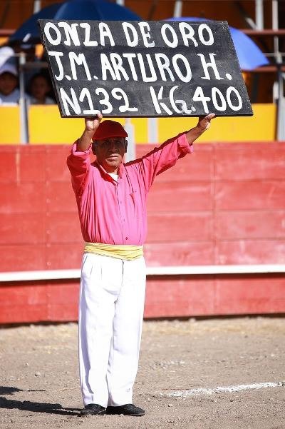 Finkley Carmona (Novillero Español) Oreja y rabo simbólicos tras el indulto al toro -Onza de Oro- No. 132 de José María Arturo Huerta con 400 kg. compartió la vuelta y las ovaciones con el ganadero Pepe Huerta.