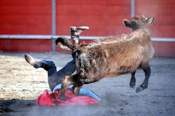 Ovación tras llevarse una fortísima voltereta con una vaca complicada.