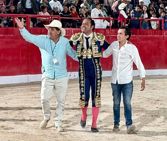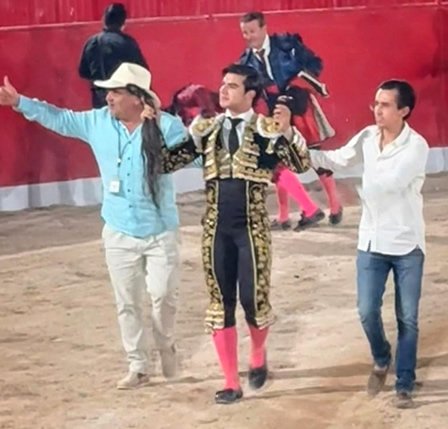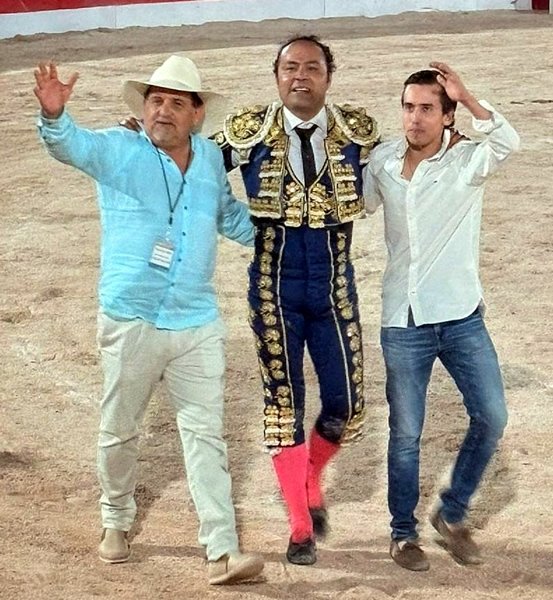 La gente ovacionó a los ganaderos de -El Grullo- Juan Carlos y Sebastián González que compartieron las vueltas triunfales con los Toreros y después los acompañaron en la Salida a hombros.
