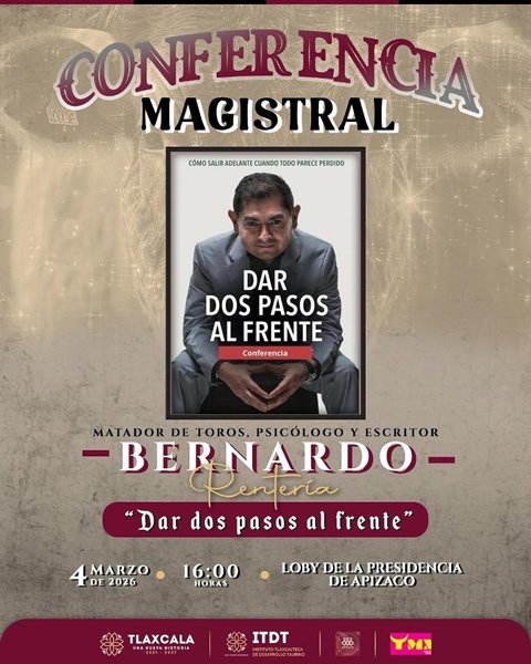 En esta ocasión el Matador de Toros y Psicólogo Bernardo Rentería ofreció una Conferencia Magistral donde presentó su Libro -Dar dos pasos al frente- -como salir adelante cuando todo parece perdido -, El autor fue recibido por el Director de Turismo Municipal Sergio Jair Méndez en representación del Alcalde, el Director del ITDT Matador José Luis Angelino y la Reina de la Feria Ximena 1ra, moderó el evento el experimentado periodista Guillermo Veloz, también se presentó a la mascota de la Feria -Chu Chu-.