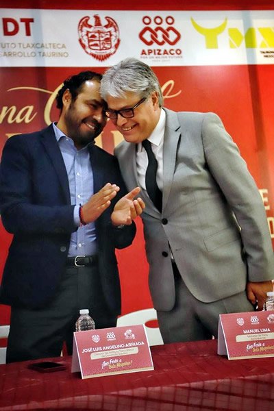 La tarde de este jueves 5 de Marzo en el Lobby de la Presidencia Municipal los aficionados y representantes de los medios de comunicación se dieron cita para el Homenaje al Matador de Toros Apizaquense Manuel Lima, en el marco de la Semana Cultural Taurina de Feria, iniciativa del H. Ayuntamiento que encabeza el Alcalde Javier Rivera Bonilla y del Instituto Tlaxcalteca de Desarrollo Taurino que dirige el Matador José Luis Angelino, esta tarde la conducción corrió a cargo de la guapa y experimentada periodista Paola Huerta Ugarte quien dio la bienvenida y presentó al Director de Turismo Municipal Sergio Jair Méndez en representación del Presidente Municipal y al Matador José Luis Angelino del ITDT quienes acompañaron en la mesa al homenajeado de quién Paola hizo una breve semblanza.