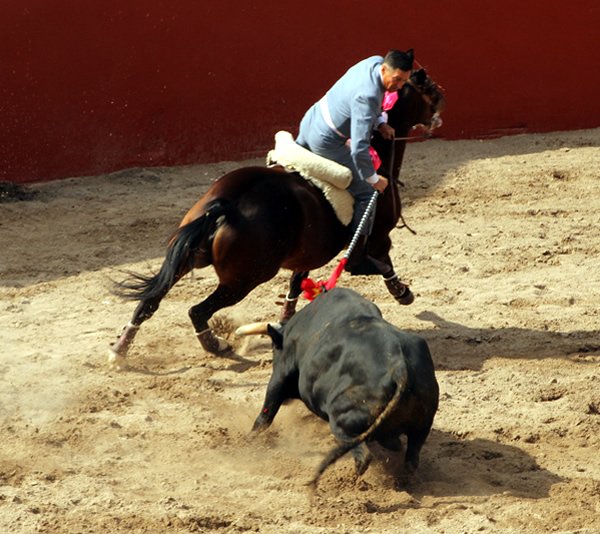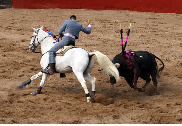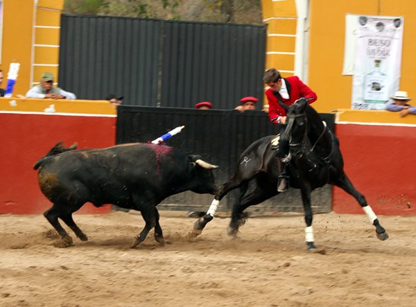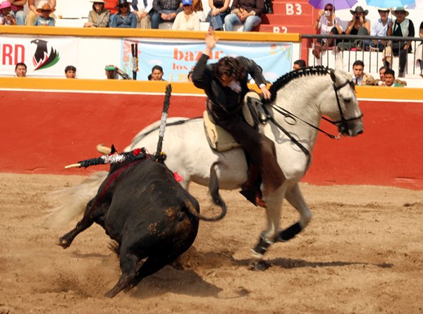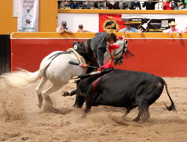 Sábado 21 de marzo. Esta tarde en el Centro Caballar Los Azulejos, se dio la corrida mixta de rejoneo, donde actuaron Tres Rejoneadores con alternativa y dos novilleros, para lidiar un buen encierro de ejemplares de la ganadería de Zacatepec, bien presentados todos, destacando dos de ellos que recibieron arrastre lento y solo el lidiado en séptimo lugar, fue débil y remiso. Con este ganado, se lograron triunfos importantes para Guillermo Hermoso de Mendoza que cortó cuatro Orejas y un rabo a dos ejemplares, tres Orejas para Tarick Othón que dejo ver su buen paso por este ruedo y Mario Sandoval que se le otorgaron dos Orejas muy forzadas, pero de triunfo finalmente. Y quien abrió plaza la Rejoneadora novilleril Stefanía Uribe con buena actuación hubiera cortado una oreja por lo menos, pero como no hubo petición, quedo su buena actuación con vuelta al ruedo. Igualmente, con actuación voluntariosa y dejando ver buenas maneras, el Rejoneador novillero Emilio Cano, que cerró plaza, fue a quien le tocó el novillo débil y aquerenciado, a pesar de las ganas y buena disposición que le valió el corte de una Oreja, misma que paseo entre el beneplácito de un público que hiso casi tres cuartos de entrada en el bello escenario de Los Azulejos, saliendo el público feliz de haber disfrutado de una tarde de buenos Toros y Toreros de a caballo.
