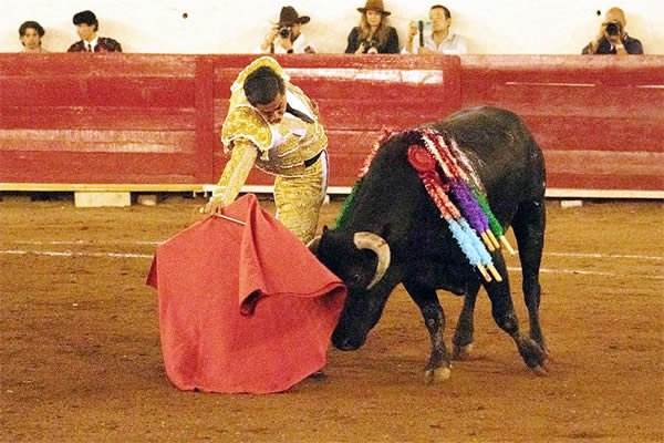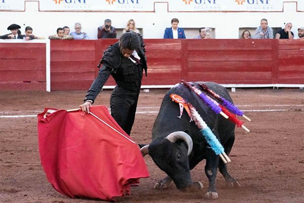 Diego Alarcón, con -Travieso-, No. 118, de 366 kg: un novillo noble, repetidor, con fijeza y calidad, que en la segunda tanda tiró para las tablas; sin embargo, cuando se quedó, mostró recorrido. El gusto duró poco: cambió de lidia, poniéndose andarín. En un momento de apuesta del torero, resultó volteado aparatosamente; sin embargo, se levantó para volver a la cara del toro, sin lograr calar en los tendidos.