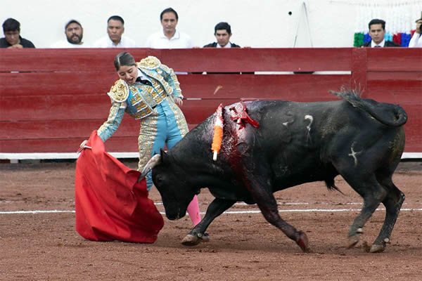 Luz Elena, turquesa y oro, con -Chepis-, No. 137, con 369 kg: un novillo con transmisión y fijeza, aunque de embestida áspera. Luz Elena mostró firmeza, actitud y entrega. Mató de estocada entera, lo que provocó una fuerte petición de oreja, que fue concedida.