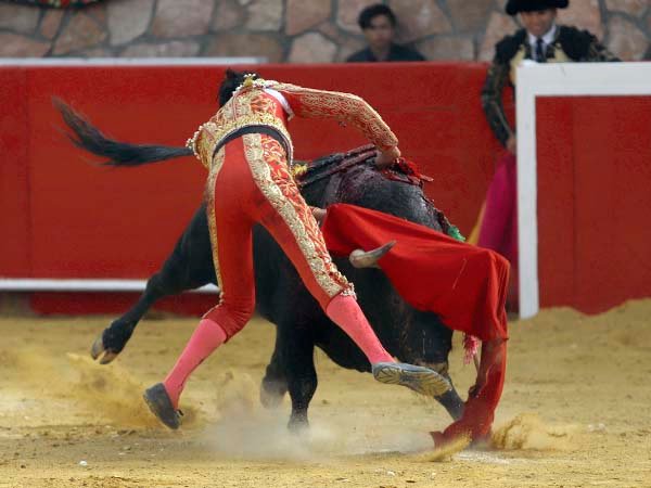 A la hora de entrar a matar señaló un primer pinchazo en lo alto, al que siguió una estocada entera, desprendida, que hizo rodar al toro con prontitud. La gente pidió la oreja que el juez no concedió. Sin embargo, fue llamado a dar una aclamada vuelta al ruedo, en medio de muchas muestras de cariño que se prolongaron cuando salió de esta plaza, una de las de mayor importancia en las inmediaciones de la capital.