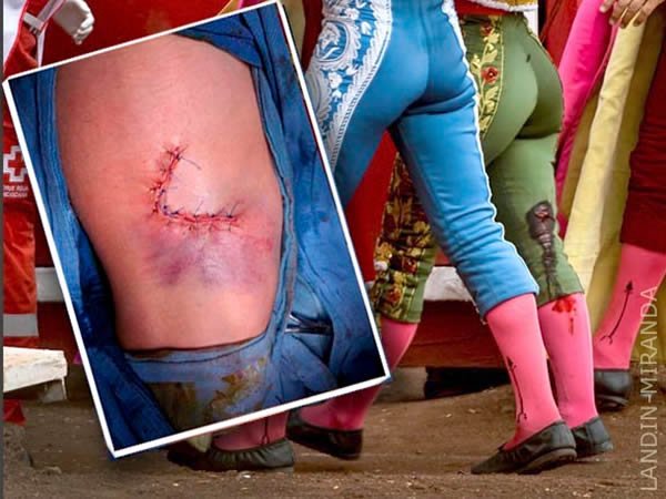 La cornada que atendió el doctor David Martínez, jefe de los servicios médicos de las plazas de Aguascalientes, fue en la parte posterior del muslo derecho, de dos trayectorias, una hacia arriba de cinco centímetros de longitud y otra profunda, de 15 centímetros, sin afección de vasos sanguíneos ni nervios.